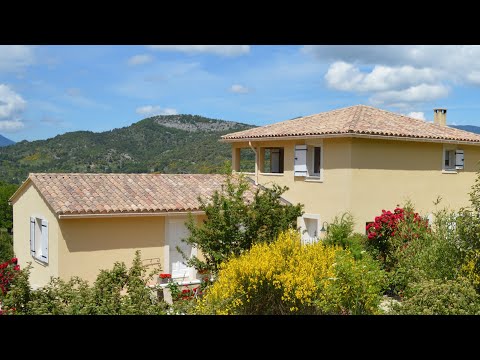 Un salon ensoleillé avec une loggia spacieuse au sud-ouest avec une belle vue panoramique sur le Mont Ventoux et Montbrun-les-Bains.Depuis le salon un accès direct à une terrasse ensoleillée avec des chaises longues au sud-est.